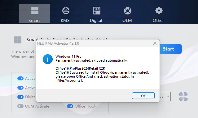 Tại giao diện phần mềm, nhấn nút Start để bắt đầu quá trình kích hoạt tự động.